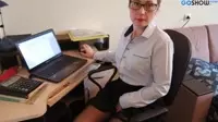 In a dimly lit office, the mature and sultry secretary, wearing a tight pussycat bow blouse that accentuated her impressive milf physique, could feel her heart racing as she caught sight of her boss entering through the door.Her mind filled with fantasies involving this man and his powerful position, her fingers trembled as she reached out for the telephone receiver, making sure to keep her voice as soft and seductive as possible, promising a world of pleasure in return for just one more chance at power and influence.As he approached her desk, his eyes wandered over her stockings and nylonclad legs which were spread wide apart to make room for her kneeling position.His breaths grew heavier as her fingers found their way between her own spread thighs, sliding effortlessly along the soft folds of her pussy while maintaining eye contact with her boss who stood before her.She bit her full lower lip, an unmistakable signal to him of her intense desire for the powerful man.Slowly but surely, she unbuttoned her blouse to reveal a black lacy bra that matched her stockings and nylons.Her secretary glasses remained in place as she continued to finger herself, imagining his touch and feeling an overwhelming sense of power from their secret arrangement.As her climax neared, the secretary couldnt hold back any longer, arching her back in a way that emphasized her milf body while she let out a breathy moan, bringing herself to an intense orgasm, all the while maintaining eye contact with her boss who stood mesmerized by the scene before him.In a single motion, the secretary dropped the phone receiver, stood up, and leaned forward, offering herself to him without any hesitation.With one swift move, he pulled her in for a deep, passionate kiss that left them both breathless and panting with anticipation of what pleasures they would share together.